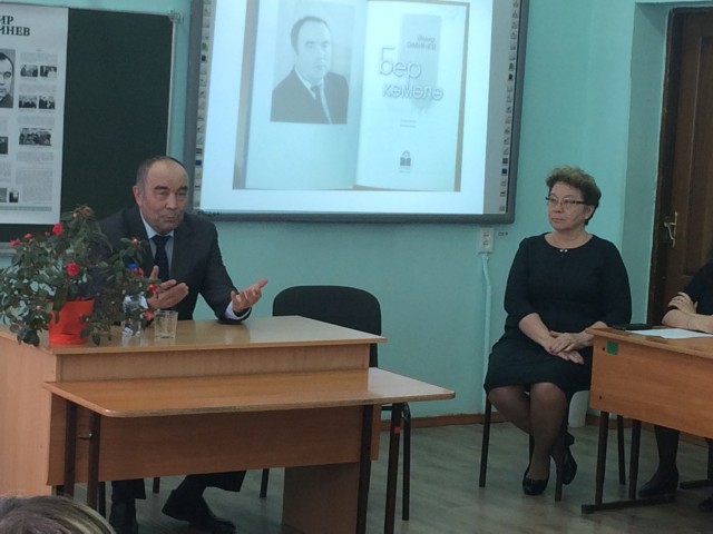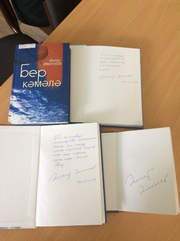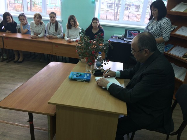 В конце встречи А.Аминев подарил гимназии свои книги с автографами.