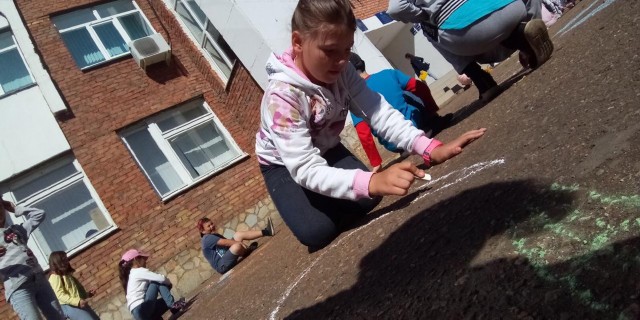 Также ярко и красочно прошел конкурс рисунков на асфальте на тему «Мой любимый герой мультфильма».