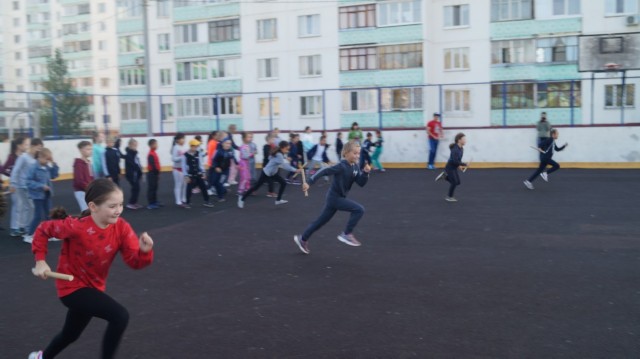 Для обучающихся 2-4 классов: танцевальный флэш-моб-разминка, веселые старты, индивидуальные забеги и эстафета между классами.