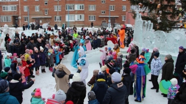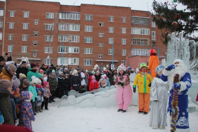 На улице Зеленой в Шакше состоялся детский праздник по случаю открытия новогодней елки и ледового городка.