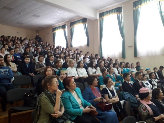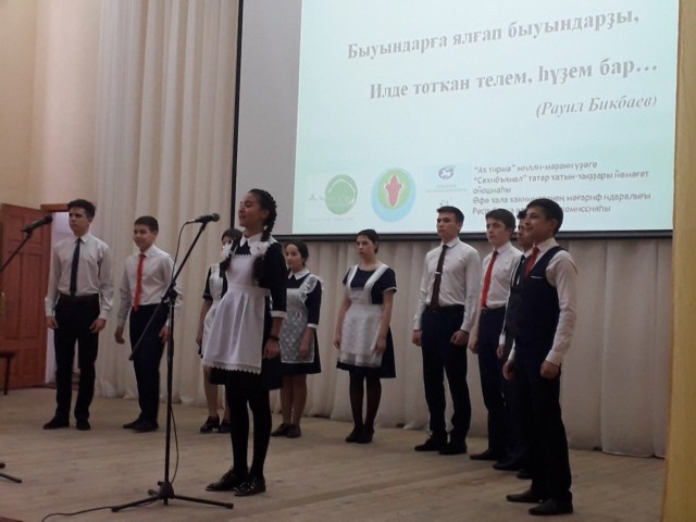 Праздник завершился поэтическим флешмобом. Учащиеся и гости праздника рассказали стихотворение Рашита Нигмати «Туган тел».