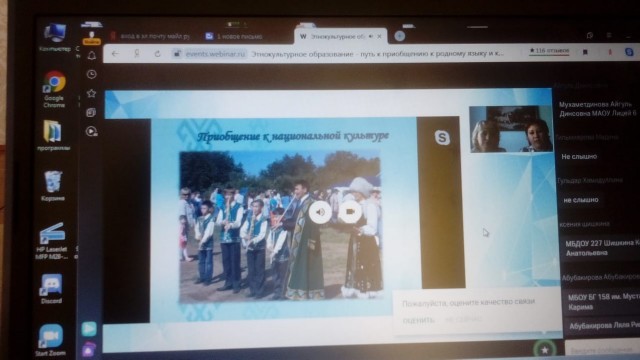 В этом вебинаре приняла участие наша гимназия, тема выступления «Использование элементов национальной культуры в современном образовательном пространстве». Был представлен опыт работы учителей и педагогов гимназии по приобщению обучающихся к национальной культуре, обычаям, традициям башкирского народа, его духовности, нравственно-эстетическим ценностям.